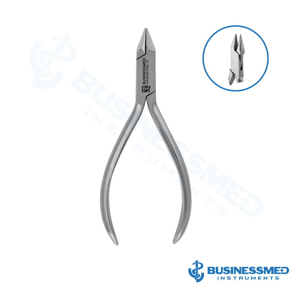 The 141 Light Wire Pliers with Step and 3 Grooves by BusinessMed Instruments are specialized dental tools designed for precise bending, looping, and contouring of light orthodontic wires up to .025″ in diameter. Perfect for both chairside and laboratory use, these pliers provide delicate control for detailed wire adjustments.
