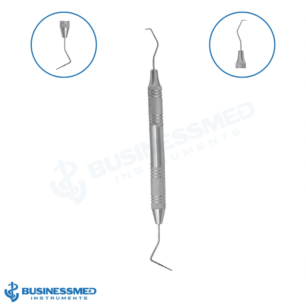 The 17 Explorer and Williams Probe by BusinessMed Instruments is a precision double-ended dental tool designed for comprehensive examination and charting. This combination instrument features a flexible and resilient #17 explorer tip for detecting caries and calculus, paired with a Williams probe end with 1-2-3-5-7-8-9-10 markings for precise periodontal pocket measurement. Expertly crafted from premium 440A medical-grade stainless steel, it ensures superior strength and durability. The H4 hollow ergonomic handle offers a lightweight, comfortable grip, minimizing hand fatigue and enhancing tactile sensitivity during diagnostic procedures. All BusinessMed Instruments products are CE Certified, ISO 13485 compliant, and FDA Approved, ensuring global standards of quality and safety.