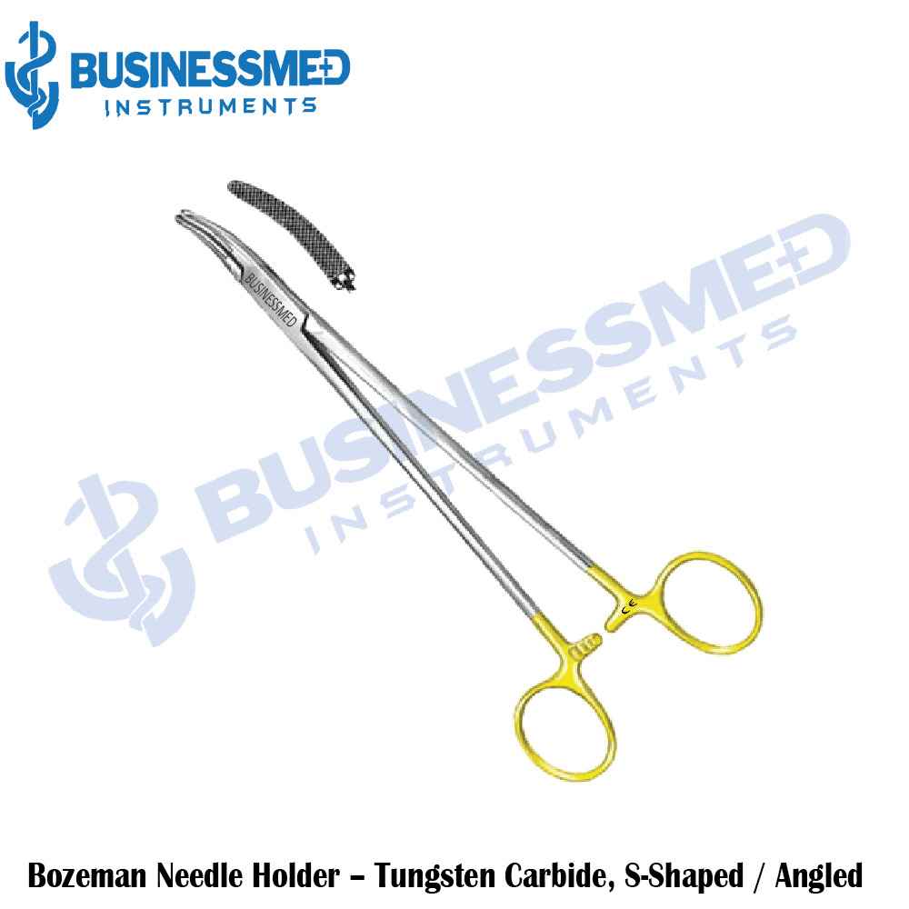 BusinessMed proudly introduces their innovative Bozeman Needle Holder crafted from resilient German stainless steel. Its durable tungsten carbide inserts furnish uncompromising control and steadiness thanks to the nonslip crosshatched texture. Exceptionally contoured for diverse medical procedures, the ergonomic design bestows surgeons unprecedented dexterity. Our needle graspers are renowned for facilitating intricate suturing with unrivaled manipulation, allowing for even microscopic tissue repairs. The precisely milled pyramidal teeth firmly and dependably retain any needle shaft. Projecting an extended lifespan, the tungsten carbide jaws surpass mere durability and provide clinicians with a trusted ally in their work. Backing this instrument is BusinessMed’s assurance of dependability for generations to come.