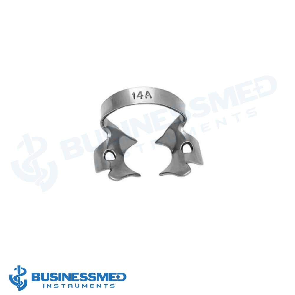 Clamp 14A by Businessmed Instruments is a trusted solution for isolating larger, partially erupted, or irregular molars where standard clamps may not fit securely. Its wider gripping arc and winged configuration ensure precise rubber dam retention even in anatomically difficult or asymmetrical areas.