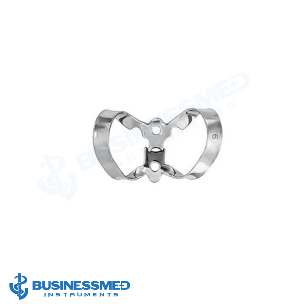 The Clamp 6 from Businessmed Instruments is a high-precision rubber dam clamp specially designed for isolating anterior teeth, particularly during labial caries procedures and aesthetic restorations. Its winged configuration makes rubber dam placement quick and secure, providing optimal access and dry-field isolation in the anterior segment.