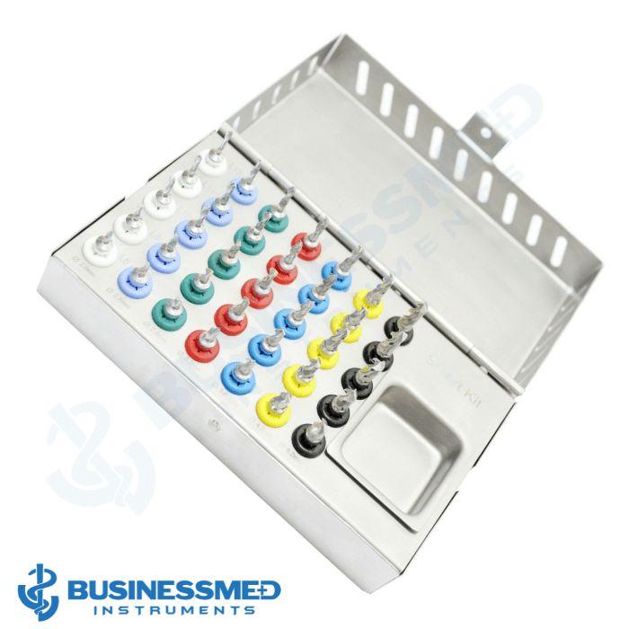 Includes pilot drills, countersinks, taps, and a variety of sizes to suit different implant types