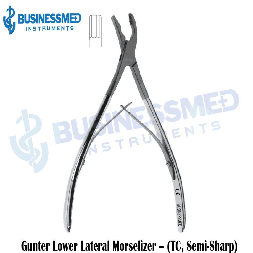 BusinessMed Instruments has established a reputation for manufacturing equipment of the highest quality and our Gunter Lower Lateral Morselizer– Tungsten Carbide, Semi Sharp built from durable tungsten carbide and featuring a semi-sharp design—meets rigorous industry standards.At eighteen centimeters (18cm) in overall length, it contains two distinct jaw surfaces tailored for either cutting or crushing cartilage as needed. Contained within the longitudinal jaw ridge is a tungsten carbide insert which bends and slices cartilage through reshaping, distributing the repositioned material in an even manner. Designed for repeated use in surgical settings, it carries BusinessMed’s assurance of dependability for one full year through their warranty protection.