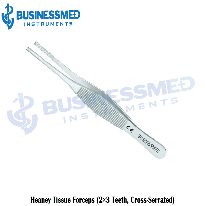 Discover BusinessMed’s Heaney Tissue Forceps, designed for precision and ease of use. These premium surgical instruments feature cross-serrated tips with 2×3 teeth and a 5-1/2 inch (14.0 cm) length, ensuring excellent grip and control. The broad handles provide comfortable manipulation during procedures. Handcrafted from high-quality German stainless steel, these forceps are durable, reliable, and protected by BusinessMed’s Lifetime Warranty. Perfect for surgeons and medical professionals seeking trusted surgical tools. Order your Heaney Tissue Forceps today!