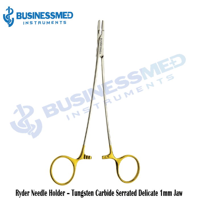The all-new Ryder Needle Holder by BusinessMed is a precision instrument designed for delicate surgical procedures. Featuring 1.0 mm parallel jaws, this device is optimized for use with 5-0 or smaller sutures. Measuring 5 inches (13 centimeters) in length, it offers excellent maneuverability in confined spaces. Crafted from high-quality German stainless steel with tungsten carbide inserts, this needle holder provides superior grip and control. Its slender tip design makes it particularly suitable for small needle applications and vascular surgeries. Tungsten carbide is one of the most durable materials compared to stainless steel. You can expect a longer extended life from this upgrade in material.
