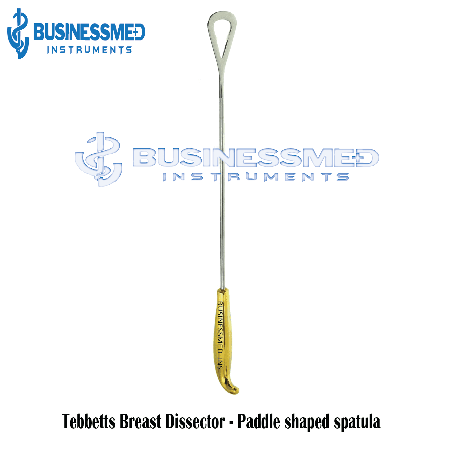 BusinessMed Instruments prides itself on crafting the finest surgical tools, such as the renowned Tebbetts Breast Dissector (Paddle shaped spatula). Boasting a paddle-like head and sturdy 330mm shaft, the spatula excels at precisely separating tissues with its balanced design. At 16-1/2″ in overall length, it proves itself a dexterous assistant in augmentation procedures, its gold-plated handle providing a sure grip. Meticulously constructed from German surgical grade stainless steel renowned for its strength and sterility, each instrument receives close inspection before being released from our workshops.